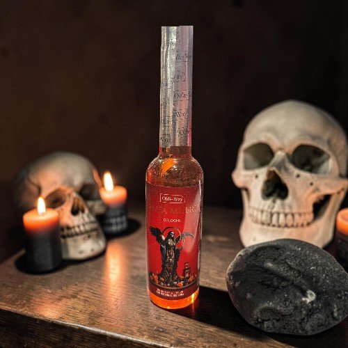 Santa Muerte Cologne is crafted from a rich blend of aromatic ingredients, creating a deep and captivating scent. It can be used as a personal fragrance or as part of rituals focused on protection, clarity, and transformation.