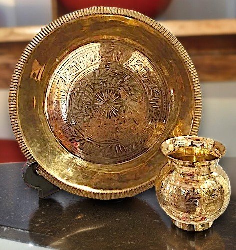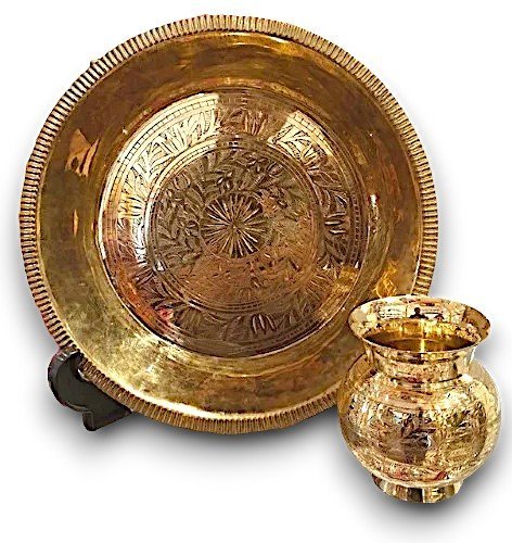 Home *Spiritueel & Religie Thali & Lota / Sier schaal & Glas THALI LOTA LUX GOUD 30CM THALI LOTA 9 CM ZWAAR